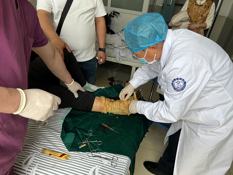 2025年4月23日, 應(yīng)東莞市中西醫(yī)結(jié)合醫(yī)院手外科及東莞市企石醫(yī)院創(chuàng)面修復(fù)科二位主任邀請,中國中西醫(yī)結(jié)合學(xué)會燒傷專業(yè)委員會常務(wù)委員、《中國燒傷創(chuàng)瘍雜志》副總編輯王洪生,來到上述二家醫(yī)院對糖足及壓瘡病人會診指導(dǎo),并給出了治療方案和建議,受到主任及醫(yī)護(hù)人員的認(rèn)可及好評!