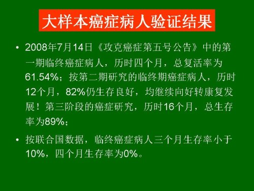 7、  第四階段研究仍是免費研究,凡是按規(guī)定執(zhí)行研究計劃的臨終癌癥患者均獲得免費再生食療。