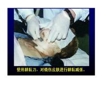 把MEBO涂在傷口上,用耕耘刀對(duì)全層燒傷皮膚進(jìn)行早期耕耘減張