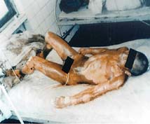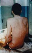 病例7:男,44歲,被熱堿燙傷面積達(dá)100% 治療前病人的背部 用MEBT/MEBO治療32天后燙傷創(chuàng)面再生痊愈
