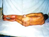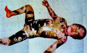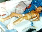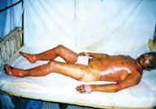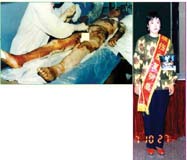 病例8:男,36歲,被工業(yè)廢水燙傷面積達(dá)95% 。病人用MEBT/MEBO治療后痊愈,沒(méi)有殘疾   病例9:女,18歲,開(kāi)水燙傷面積達(dá)96% 。病人用MEBT/MEBO治療49天后未經(jīng)植皮痊愈,無(wú)殘疾