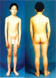 病例4:女,9歲,被開(kāi)水燙傷面積達(dá)93% 在治療過(guò)程中的背部情況 用MEBT/MEBO治療46天后燙傷創(chuàng)面再生痊愈,右上圖是病人一年后的現(xiàn)狀