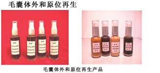 取小鼠的毛囊組織細(xì)胞,將單個(gè)細(xì)胞放入美寶毛囊培養(yǎng)液中培養(yǎng),單個(gè)毛囊細(xì)胞自身克隆復(fù)制、增殖、分化,而后連接,形成毛乳頭組織,再繼續(xù)培養(yǎng),毛乳頭組織逐漸形成毛囊組織,毛囊組織則見(jiàn)有毛管向外長(zhǎng)出,同時(shí)圍繞毛管周?chē)拿医M織細(xì)胞長(zhǎng)出大量膠原纖維絲,纏繞在毛管的周?chē)?,共同形成毛發(fā)。而對(duì)照組,毛囊組織不能形成。(詳見(jiàn)毛囊原位再生圖片介紹 圖7.21-7.27)