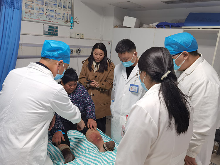 2024年12月3日,渦陽(yáng)縣人民醫(yī)院整形外科張主任邀請(qǐng)《中國(guó)燒傷創(chuàng)瘍雜志》編委、燒傷創(chuàng)瘍?cè)偕t(yī)療技術(shù)臨床專家張強(qiáng),到科室會(huì)診幾例難愈合創(chuàng)面患者,得到醫(yī)護(hù)人員以及患者家屬一致好評(píng)。