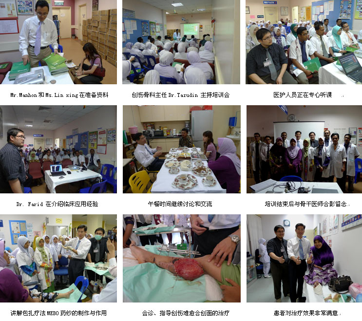 2010年4月1日至25日,馬來西亞新一年的第一輪醫(yī)療開發(fā)工作先后在首都吉隆坡市、蘇邦市、八達靈.再野市等6個省、市展開,集團財務(wù)總監(jiān)李翠和國際部徐沖經(jīng)理也到現(xiàn)場督戰(zhàn),中國燒傷創(chuàng)瘍科技中心臨床部主任、北京榮祥再生醫(yī)學研究所副所長、北京中西醫(yī)結(jié)合學會燒傷專業(yè)委員會副主任委員、中國燒傷創(chuàng)瘍雜志社副社長陳永翀教授先后應(yīng)邀到多家政府醫(yī)院和私營醫(yī)院,進行燒傷再生醫(yī)學技術(shù)培訓、學術(shù)交流、到燒傷中心和創(chuàng)傷骨科會診指導燒傷創(chuàng)瘍病例的治療,以及和各醫(yī)院的主任、院長研究討論臨床科研工作的開展和燒傷創(chuàng)瘍再生愈合中心的建設(shè)等,很受醫(yī)院、醫(yī)師、護士和患者的歡迎。在25天的時間里,先后舉辦了院級培訓班8期,重點專家學術(shù)交流7次,培訓了燒傷、整形、普通外科、骨科的醫(yī)師和護士300余名,對 3家老醫(yī)院進行了有效的維護和促進,成功新開發(fā)了3家大型政府教學醫(yī)院和2家私營醫(yī)院,幫助建立了一家燒傷中心(國家級技術(shù)規(guī)范基地),會診、指導危重疑難病例:燒傷10例(特重度燒傷4例),創(chuàng)傷11例,慢性潰瘍15例,疤痕3例,皮膚病2例,實現(xiàn)了較好的醫(yī)療開發(fā)、維護和進一步規(guī)范臨床技術(shù)的效果。