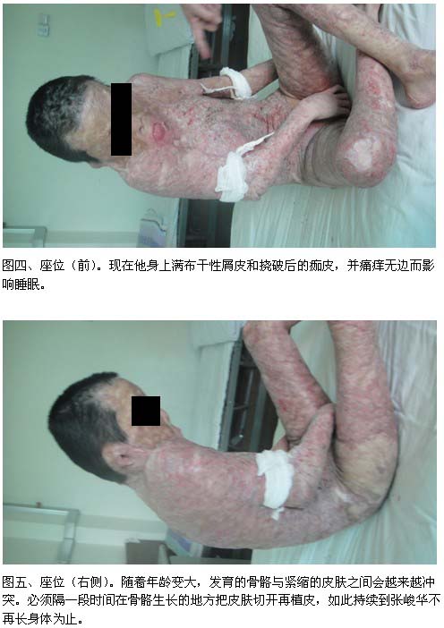 2011年6月14日濟(jì)南106醫(yī)院高端美容整形燒傷創(chuàng)瘍中心收住來自山東省立醫(yī)院燒傷科一名全身燒傷疤痕,重度殘疾患兒。名叫張峻華,男,12歲,是山東省淄博市淄川區(qū)昆侖鎮(zhèn)大昆侖村小學(xué)二年級畢業(yè)的學(xué)生。