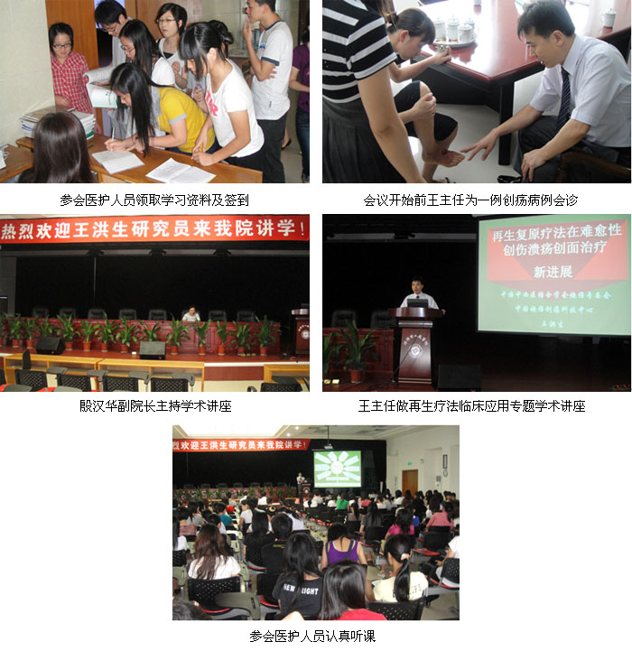 受在市里參加人大會(huì)議的唐國(guó)智院長(zhǎng)委托,該院殷漢華副院長(zhǎng)全程主持并聆聽(tīng)了學(xué)術(shù)講座。在專題講座中,王主任采用多媒體教學(xué)方式,利用大量的臨床圖片資料和影像資料深入淺出地介紹了再生復(fù)原療法在難愈性創(chuàng)瘍創(chuàng)面治療的新進(jìn)展;對(duì)不同深度、不同原因的燒傷創(chuàng)面的臨床規(guī)范化處理;大面積燒傷的全身綜合治療及護(hù)理;燒傷病房的管理;針對(duì)不同程度的燒傷創(chuàng)面、潰瘍創(chuàng)面、各種難愈性創(chuàng)傷創(chuàng)面的規(guī)范化處理方法和注意事項(xiàng)等。燒傷外科主任劉文通等相關(guān)專業(yè)的專家和醫(yī)護(hù)人員紛紛表示,他們雖然已經(jīng)使用燒傷皮膚再生復(fù)原技術(shù)十多年,但是通過(guò)王主任的這次學(xué)術(shù)講座,對(duì)再生復(fù)原技術(shù)在多科室的應(yīng)用有了進(jìn)一步的了解和掌握,規(guī)范了該項(xiàng)技術(shù)在臨床的正確使用方法,受益匪淺。學(xué)術(shù)講座一直持續(xù)到晚上17:50分才結(jié)束。