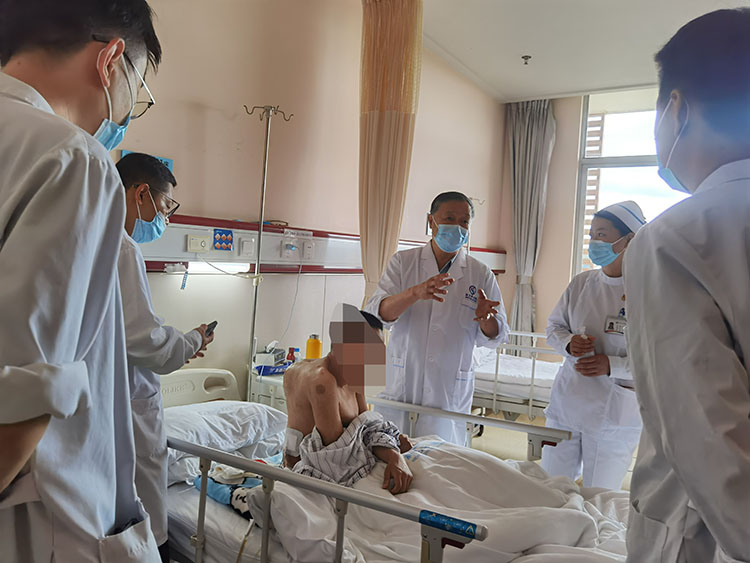 2023年7月12日,《中國燒傷創(chuàng)瘍雜志》編委、燒傷創(chuàng)瘍?cè)偕t(yī)療技術(shù)臨床專家張強(qiáng),應(yīng)湖北省松滋市人民醫(yī)院普外科李主任的邀請(qǐng),會(huì)診多例燒傷及慢性難愈創(chuàng)面患者,張教授親自示范指導(dǎo)換藥,并就換藥過程中要注意的細(xì)節(jié)問題進(jìn)行了講解,針對(duì)每個(gè)患者的具體情況給出了后續(xù)治療方案,得到了醫(yī)生和患者的高度認(rèn)可。