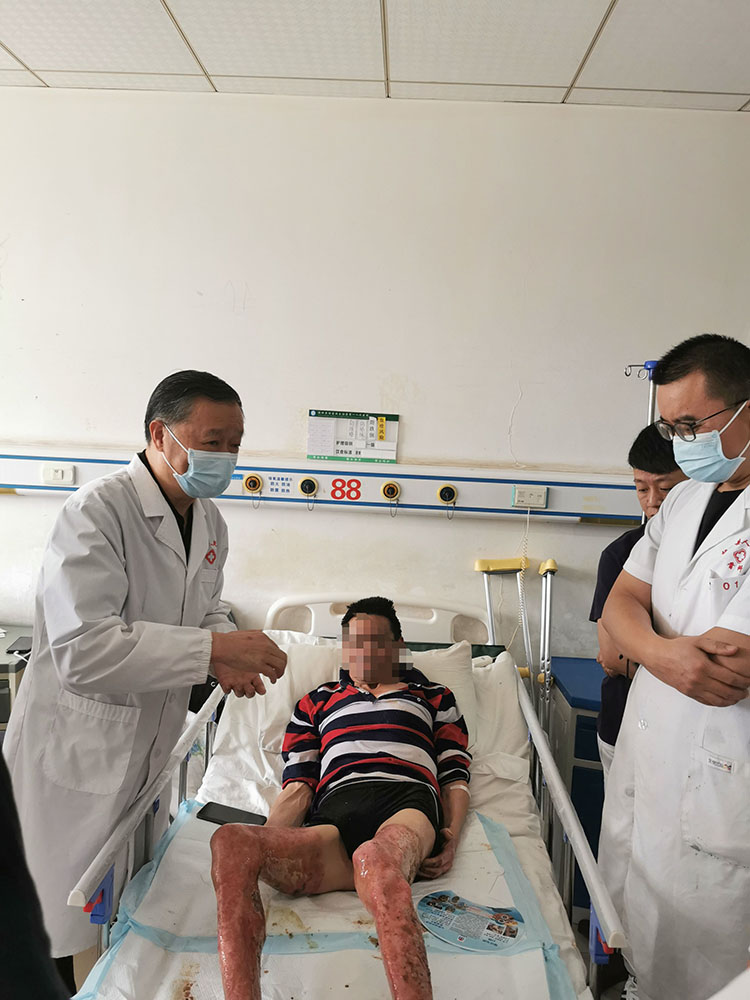 2023年7月14日,《中國燒傷創(chuàng)瘍雜志》編委、燒傷創(chuàng)瘍?cè)偕t(yī)療技術(shù)臨床專家張強(qiáng)應(yīng)邀走訪湖北省荊門市中醫(yī)醫(yī)院燒傷整形科,會(huì)診一例大面積燒傷患者,協(xié)調(diào)廖醫(yī)生一起給患者進(jìn)行了換藥治療,張教授就患者創(chuàng)面恢復(fù)情況跟封主任進(jìn)行了交流,提出了后續(xù)防疤治療方案,得到患者和臨床醫(yī)生高度認(rèn)可!