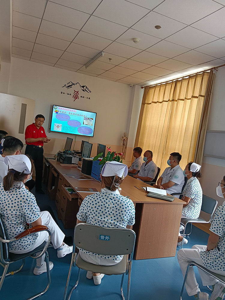2023年7月26日,中國中醫(yī)藥高等教育學(xué)會(huì)臨床教育研究會(huì)肛腸分會(huì)常務(wù)理事、北京中西醫(yī)結(jié)合學(xué)會(huì)燒傷專業(yè)委員會(huì)副主任委員、北京中醫(yī)藥學(xué)會(huì)肛腸專業(yè)委員會(huì)委員、《中國燒傷創(chuàng)瘍雜志》常務(wù)編委張勇,受邀來到阜新市第二人民醫(yī)院,張勇教授本次主講再生醫(yī)療技術(shù)在難愈合性創(chuàng)面的臨床應(yīng)用和優(yōu)勢,張勇教授用豐富的臨床經(jīng)驗(yàn),詮釋了再生醫(yī)療技術(shù)在護(hù)理工作中的重要性、實(shí)用性,分享了在燒傷、壓瘡、糖尿病足、皮膚科、內(nèi)分泌以及肛腸科等學(xué)科的典型病例,講述了再生醫(yī)療技術(shù)在臨床應(yīng)用中的優(yōu)勢,學(xué)術(shù)交流過后,張勇教授與護(hù)理部主任,護(hù)士長進(jìn)一步探討交流,并對(duì)門診患者進(jìn)行換藥實(shí)操指導(dǎo),此次學(xué)術(shù)交流為醫(yī)院護(hù)理工作鋪墊了新臺(tái)階,為阜新地區(qū)慢性難愈合創(chuàng)面患者帶來福音。