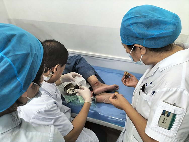 2023年7月18日,應(yīng)海安市中醫(yī)院的邀請(qǐng),南通市第三人民醫(yī)院燒傷整形美容科——孫記燕主任給一例外院轉(zhuǎn)診患者(右腿截肢后切口難愈合)進(jìn)行了會(huì)診。對(duì)換藥過程中可能出現(xiàn)的問題做了詳細(xì)的說明,同時(shí)對(duì)后期的治療也給予了指導(dǎo)意見,得到醫(yī)務(wù)人員的肯定!