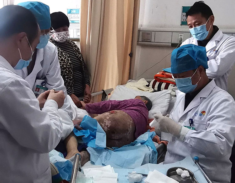 2月27日,應(yīng)邯鄲館陶縣中醫(yī)院之邀,《中國燒傷創(chuàng)瘍雜志》常務(wù)編委、燒傷創(chuàng)瘍再生醫(yī)療技術(shù)臨床專家趙瑞慶,在該院會診了一例因燒傷后未愈,在原部位又合并壓力性四度潰瘍、粗隆間外露的80歲的老年患者,創(chuàng)面感染,病情危重。趙教授現(xiàn)場處置后立即組織當(dāng)?shù)蒯t(yī)務(wù)人員討論病情并制定了下一步的診療方案,受到當(dāng)?shù)蒯t(yī)護(hù)人員及家屬的稱贊。