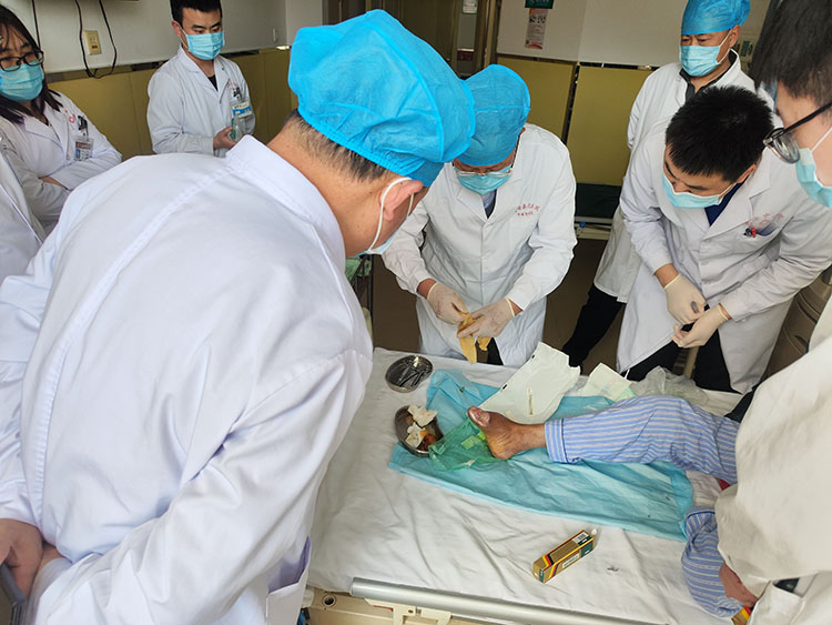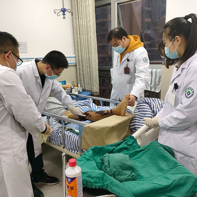 3月14日,九龍坡區(qū)第二人民醫(yī)院張孝平主任受邀來到江津福城醫(yī)院,會(huì)診一例車禍傷病人,并同科室主任及醫(yī)生一起給病人換藥,獲得大家一致好評,隨后還會(huì)診了一例內(nèi)科壓瘡病人,指導(dǎo)了如何換藥清創(chuàng)等。