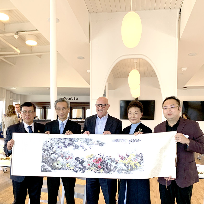 美東時(shí)間2023年2月21日,中國(guó)人民對(duì)外友好協(xié)會(huì)會(huì)長(zhǎng)林松添率團(tuán)訪問(wèn)加州灣區(qū)委員會(huì)(Bay Area Council )位于舊金山市9號(hào)碼頭 Klamath 游輪上的總部。這是中美兩國(guó)民間交流因疫情隔絕三年之后首個(gè)到訪灣區(qū)委員會(huì)的中國(guó)團(tuán)隊(duì)。