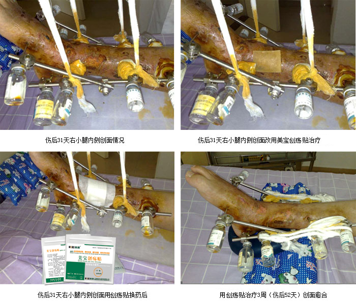 2008年6月12日以來(lái),為使收治四川地震傷員醫(yī)院的醫(yī)護(hù)人員應(yīng)用規(guī)范的皮膚原位再生復(fù)原技術(shù)處理合并創(chuàng)傷潰瘍的傷員,避免患者的創(chuàng)傷肢體因潰瘍創(chuàng)面處理不當(dāng)遭受截肢之苦,根據(jù)皮膚原位再生復(fù)原技術(shù)發(fā)明人、中國(guó)中西醫(yī)結(jié)合學(xué)會(huì)常務(wù)理事、中國(guó)中西醫(yī)結(jié)合學(xué)會(huì)燒傷專業(yè)委員會(huì)名譽(yù)主任委員徐榮祥教授指示,中國(guó)中西醫(yī)結(jié)合學(xué)會(huì)燒傷專業(yè)委員會(huì)常委、北京美寶燒傷創(chuàng)瘍研究所副所長(zhǎng)、臨床總部王洪生主任帶著徐榮祥教授為四川地震災(zāi)區(qū)合并有創(chuàng)傷潰瘍創(chuàng)面?zhèn)麊T愛(ài)心捐贈(zèng)的對(duì)皮膚、骨科潰瘍有獨(dú)特療效的美寶濕潤(rùn)燒傷膏、美寶創(chuàng)瘍貼等外用藥物和醫(yī)用復(fù)合敷料先后3次到福建醫(yī)科大學(xué)附屬?gòu)B門第一醫(yī)院杏林分院集中收治四川地震災(zāi)區(qū)傷員的愛(ài)心病區(qū)查看傷員,對(duì)相關(guān)醫(yī)護(hù)人員進(jìn)行臨床傳、幫、帶,現(xiàn)場(chǎng)示范指導(dǎo)主管醫(yī)生為合并有創(chuàng)傷潰瘍創(chuàng)面的傷員用規(guī)范的皮膚原位再生復(fù)原技術(shù)為傷員潰瘍創(chuàng)面換藥,所有合并骨科及皮膚潰瘍的創(chuàng)面運(yùn)用皮膚原位再生復(fù)原技術(shù)并改用美寶創(chuàng)瘍貼或美寶濕潤(rùn)燒傷膏油紗(MEBO油紗)換藥治療3周后,大部分潰瘍創(chuàng)面愈合或基本愈合,較大的骨外露創(chuàng)面也明顯好轉(zhuǎn),創(chuàng)面正在愈合中,從而避免了因創(chuàng)面處理不當(dāng)給患者造成截肢之痛。