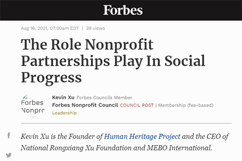 美寶集團(tuán)董事局主席徐鵬“福布斯”發(fā)文談非營(yíng)利伙伴關(guān)系在社會(huì)進(jìn)步中的作用