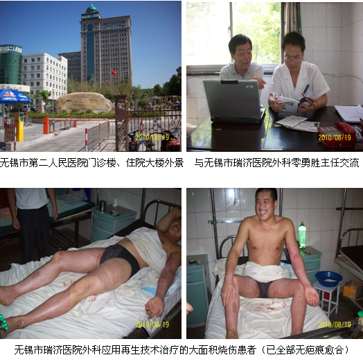 2010年8月16日~20日,中國中西醫(yī)結(jié)合學(xué)會燒傷專業(yè)委員會常委、北京美寶燒傷創(chuàng)瘍研究所臨床部燒傷創(chuàng)瘍專家杜福勤教授與周園園同志一同走訪了無錫市仁德醫(yī)院、宜興市屺亭醫(yī)院、宜興市第二人民醫(yī)院急診科、外一科、外二科、婦產(chǎn)科,無錫市瑞濟(jì)醫(yī)院(原宜興市煤礦醫(yī)院)、無錫市福利院。