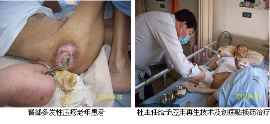 杜主任還深入病區(qū)看望了各醫(yī)院的燒傷、創(chuàng)瘍患者,并親自為電擊傷患者、褥瘡患者換藥和指導(dǎo)用藥治療,受到醫(yī)護(hù)人員和患者家屬的歡迎與感謝,達(dá)到了深入推廣再生技術(shù)的目的。
