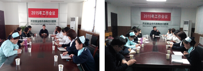 下午4時30分,醫(yī)院2015年工作會議在行政樓四樓小會議室召開,會議由醫(yī)院前任院長王文芳主持。首先,宣布了一系列新的人事任命:任命開封空分集團(tuán)有限公司工會主席、廠辦主任李潤喜為開封美寶燒傷創(chuàng)瘍空分醫(yī)院副董事長;任命王文芳為醫(yī)院黨支部書記、董事;任命王志英為醫(yī)院代理院長;任命朱登玲為副院長;任命鄭玉紅為院長助理。并宣讀了相關(guān)職責(zé)及分工。隨后,代理院長王志英做2014年工作匯報,總結(jié)了醫(yī)院一年來的各項計劃、任務(wù)的完成情況,并對2015年的工作進(jìn)行簡要部署。會上,各相關(guān)科室負(fù)責(zé)人也分別提交了2014年工作總結(jié)和2015年工作計劃。針對當(dāng)前醫(yī)院發(fā)展中存在的一些突出問題,與會人員暢所欲言,紛紛表達(dá)自己的理解和看法。對于美寶再生復(fù)原技術(shù)在治療燒傷創(chuàng)瘍疾病領(lǐng)域內(nèi)的卓越效果,大家早已達(dá)成高度共識;對于如何將其更好應(yīng)用于臨床,大家也都結(jié)合各自的實際工作發(fā)表了建議。
