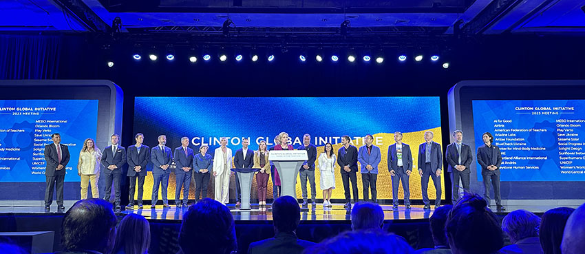 當?shù)貢r間2023年9月19日,美寶集團董事局主席徐鵬作為2022 CGI倡議“歐洲修復計劃”發(fā)起人應(yīng)邀登上克林頓基金會CGI大會主會場講臺,與希拉里·克林頓及其他倡議發(fā)起者包括Orlando Bloom 和 Liev Schreiber一起見證新的CGI國際救助行動網(wǎng)絡(luò)成立。