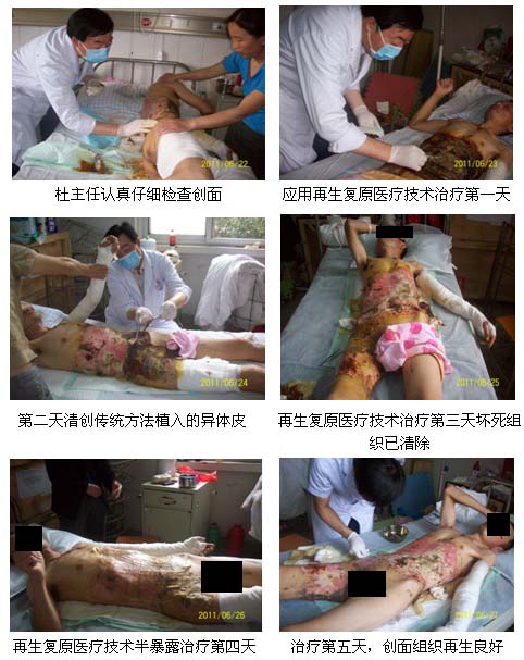 應(yīng)宿州皖北煤電總醫(yī)院燒傷整形科齊國選主任的邀請,中國中西醫(yī)結(jié)合學(xué)會(huì)燒傷專業(yè)委員會(huì)委員、北京美寶燒傷創(chuàng)瘍研究所臨床部杜福勤主任和學(xué)會(huì)駐安徽省辦事處吳崇巍同志于6月21日~6月27日對(duì)燒傷面積分別為50%TBAS(淺II度~深I(lǐng)I度)、46%TBAS(深I(lǐng)I度~淺III度)、43%TBAS(淺II度為主、混合II度)的三例燒傷患者進(jìn)行會(huì)診,并示范應(yīng)用原位再生復(fù)原技術(shù)為患者換藥治療,同時(shí)介紹了皮膚原位再生復(fù)原醫(yī)療技術(shù)的基礎(chǔ)理論、概念和國內(nèi)外臨床實(shí)踐經(jīng)驗(yàn),皖北煤電總院應(yīng)用傳統(tǒng)醫(yī)療技術(shù)多年,經(jīng)這次杜主任為大家進(jìn)行臨床示范操作及講解,讓大家體會(huì)到再生復(fù)原科學(xué)技術(shù)的臨床魅力和神奇,在不到一周的示范治療,三例患者均有明顯的治療效果,燒傷面積43%TBAS的患者大部分創(chuàng)面已基本愈合,患者要求帶藥出院在家治療,從患者興奮洋溢的臉上體現(xiàn)出了皮膚原位再生復(fù)原技術(shù)的神奇魅力。