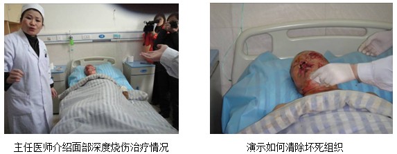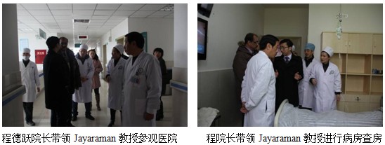 隨后,程院長(zhǎng)帶領(lǐng)Jayaraman教授進(jìn)行了病房查房活動(dòng)。在查房的過(guò)程中,醫(yī)院主任醫(yī)師詳細(xì)介紹了應(yīng)用燒傷再生療法如何治療深度創(chuàng)面,包括開(kāi)創(chuàng)引流、耕耘減張、壞死組織薄化、壞死組織液化排除等技術(shù),深深的吸引了Jayaraman教授。Jayaraman教授說(shuō):“我們的燒傷中心對(duì)于深二度以上的創(chuàng)面,一般都采用削痂植皮技術(shù),但今天我親眼看見(jiàn)了一種對(duì)壞死痂皮處理的一套新技術(shù)---創(chuàng)面無(wú)損傷、病人無(wú)痛苦、壞死組織自動(dòng)液化排除, 好技術(shù)、好技術(shù)?!?/FONT>