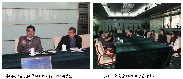 美寶國際集團(tuán)國際部與印度Elder醫(yī)藥公司一直保持著長期的交流,雙方一直希望可以達(dá)成合作。美寶國際集團(tuán)國際部市場人員在今年的三月初對Elder醫(yī)藥公司進(jìn)行了技術(shù)和商務(wù)訪問。隨后,Elder醫(yī)藥公司總經(jīng)理Alok Saxena迅速安排Elder醫(yī)藥公司生物技術(shù)部總經(jīng)理Sharad和(研發(fā))副總裁Sakhardande對美寶國際集團(tuán)進(jìn)行為期一天的技術(shù)和商務(wù)回訪,為下一步雙方的全面合作奠定了堅實的基礎(chǔ)。