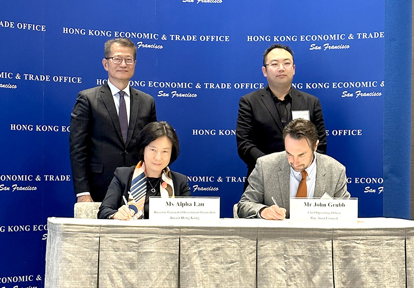 APEC前籌委會主席徐鵬與香港財政司司長陳茂波見證香港特別行政區(qū)與加州灣區(qū)委員會簽署合作備忘錄