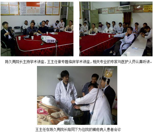 2011年11月28日上午,中國(guó)中西醫(yī)結(jié)合學(xué)會(huì)燒傷專業(yè)委員會(huì)常委兼秘書、《中國(guó)燒傷創(chuàng)瘍雜志》副總編輯、北京美寶燒傷創(chuàng)瘍研究所副所長(zhǎng)、臨床研究部主任王洪生研究員應(yīng)長(zhǎng)樂(lè)市中醫(yī)醫(yī)院院長(zhǎng)陳久亮副主任醫(yī)師的邀請(qǐng)到該院做“燒傷皮膚原位再生復(fù)原技術(shù)的診療與護(hù)理”及“再生復(fù)原療法在難愈性創(chuàng)面治療新進(jìn)展”臨床專題學(xué)術(shù)講座,王主任到達(dá)該院后,首先在陳久亮院長(zhǎng)、該醫(yī)院醫(yī)務(wù)科長(zhǎng)、創(chuàng)傷外科、骨科主任等專家陪同下深入該醫(yī)院創(chuàng)傷外科骨科病房為1例褥瘡患者會(huì)診,然后,王主任又在陳久亮院長(zhǎng)及該醫(yī)院領(lǐng)導(dǎo)班子陪同下到長(zhǎng)樂(lè)市政府已批準(zhǔn)投資5億人民幣開(kāi)始規(guī)劃建設(shè)的醫(yī)院新址參觀。