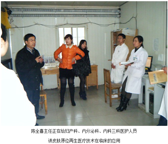 河南平頂山市葉縣是毛主席1968年視察過的地方,“廣闊天地,大有作為”。應葉縣人民醫(yī)院內(nèi)分泌科的邀請,中國中西醫(yī)結(jié)合學會燒傷專業(yè)委員會委員、北京美寶燒傷創(chuàng)瘍研究所臨床部專家陳全喜主任前往葉縣人民醫(yī)院,在醫(yī)院內(nèi)分泌科對婦科、外科、內(nèi)分泌科的護士長進行了皮膚原位再生醫(yī)療技術(shù)的培訓。