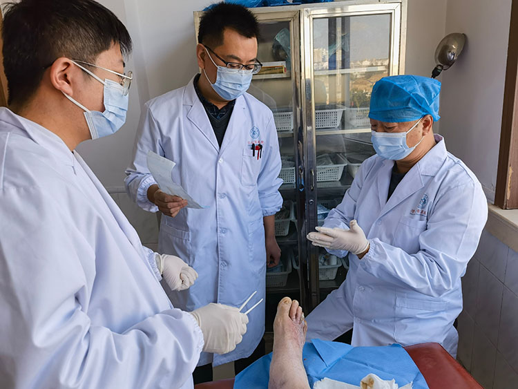 2024年11月27日,《中國燒傷創(chuàng)瘍雜志》編委、燒傷創(chuàng)瘍再生醫(yī)療技術(shù)臨床專家張強應(yīng)?邀來到潛山市立醫(yī)院?,對該院收治的一名糖尿病足患者進行查看會診,進行創(chuàng)面清創(chuàng)、擴創(chuàng)以及對治療方案給予指導,受到醫(yī)患雙方一致好評!