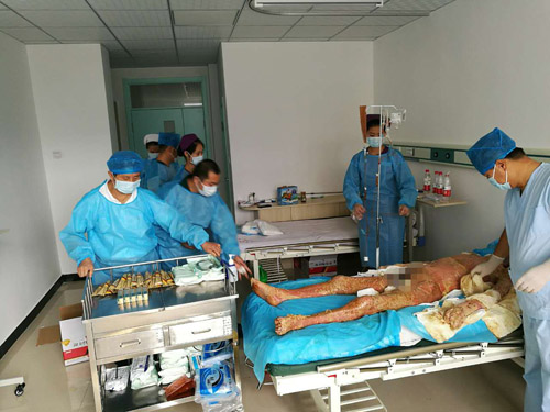 經該院燒傷科姜月虎主任帶領的搶救小組20余天的晝夜奮戰(zhàn),三例大面積特重度燒傷患者已全部成功救治。中國中西醫(yī)結合學會燒傷專業(yè)委員會再生醫(yī)療技術專家與救治小組的同志們一起戰(zhàn)斗在治療一線,全程參與了救治。