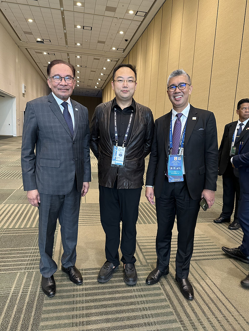 馬來西亞首相安華(左一)、APEC籌委會(huì)聯(lián)合主席徐鵬(中)、馬來西亞商務(wù)部長TENGKU ZAFRUL TENGKU ABDUL AZIZ(右一)
