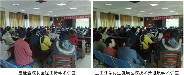 當日下午15時,融水縣苗族自治縣人民醫(yī)院門診綜合樓4樓會議室座無虛席,全院各科室除值班醫(yī)護人員外,共有150多人到會聆聽王主任的專題講座,院長唐桂壹全程聆聽并主持了學術(shù)講座。會議中,王主任結(jié)合了大量的臨床病例圖片,主要針對再生復原醫(yī)療技術(shù)在糖尿病足及各類難愈性創(chuàng)傷、潰瘍創(chuàng)面的規(guī)范化處理方法與技巧、注意事項等進行了細致地講解,活動持續(xù)到下午17時才結(jié)束。