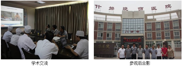 臨床觀摩后大家來到醫(yī)院會(huì)議室,醫(yī)院王建學(xué)主任通過多媒體向來賓們介紹了醫(yī)院建設(shè)、發(fā)展情況,圖文并茂的將醫(yī)院應(yīng)用再生技術(shù)救治各種燒傷創(chuàng)瘍患者的臨床照片向來賓們展示和講解。學(xué)術(shù)交流后程院長(zhǎng)、醫(yī)院各科室主任和來賓交流了醫(yī)院管理、發(fā)展等大家共同關(guān)心的問題。