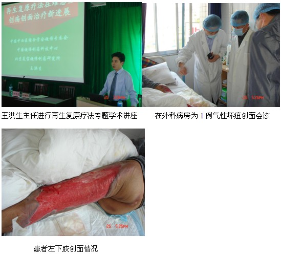 在學(xué)術(shù)講座中,王教授首先向與會(huì)醫(yī)護(hù)人員介紹了我國(guó)著名生命科學(xué)家、醫(yī)學(xué)家徐榮祥教授在人體再生復(fù)原科學(xué)領(lǐng)域取得的實(shí)驗(yàn)及臨床研究最新進(jìn)展,在2010年年底公布的“人體生命延續(xù)之謎(二)——線粒體主導(dǎo)日常生命”,破解了“精、氣、神、力”旺盛與人體啟動(dòng)了再生生命程序有關(guān),與細(xì)胞內(nèi)各主要細(xì)胞器功能的發(fā)揮有關(guān),并進(jìn)一步證實(shí)了一個(gè)生命體可以同時(shí)具有“基本生命”和“再生生命”等,然后結(jié)合了大量的臨床病例圖片,主要針對(duì)不同深度的燒傷創(chuàng)面及各類難愈性創(chuàng)傷、潰瘍創(chuàng)面的規(guī)范化處理方法與技巧、注意事項(xiàng)及其各種原因引起的骨外露的治療方案等進(jìn)行了細(xì)致地講解,并用向?qū)W員展示了糖尿病足創(chuàng)面規(guī)范處理的錄像,并且詳細(xì)解答了醫(yī)護(hù)人員提出的各種提問(wèn)。學(xué)術(shù)講座一直持續(xù)到當(dāng)日下午17:00時(shí)才結(jié)束。隨后該院外科肖渝主任又邀請(qǐng)王洪生教授到該院外科病房為1例左下肢氣性壞疽合并的難愈性創(chuàng)面進(jìn)行會(huì)診,指導(dǎo)下一步創(chuàng)面修復(fù)方法和措施。