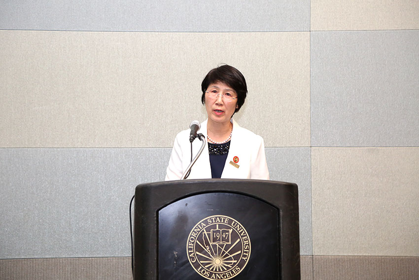 洛杉磯州大副校長(zhǎng)珍妮特·戴爾代表州大校長(zhǎng)對(duì)來(lái)到洛杉磯州大的各界朋友表示歡迎,并表示傳承徐大夫的名字是洛杉磯州大的榮耀。