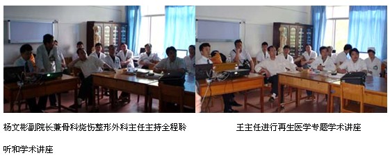 2011年5月6日上午9:30分應(yīng)來賓市人民醫(yī)院邀請,中國中西醫(yī)結(jié)合學(xué)會燒傷專業(yè)委員會常委、中國燒傷創(chuàng)瘍雜志社副總編輯、北京美寶燒傷創(chuàng)瘍研究所副所長,臨床研究部主任王洪生研究員到該醫(yī)院進(jìn)行“再生復(fù)原療法在燒傷及難愈性創(chuàng)瘍創(chuàng)面治療新進(jìn)展”專題學(xué)術(shù)講座。