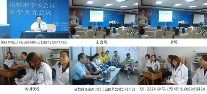 北京燒傷創(chuàng)瘍研究所副所長(zhǎng)趙瑞慶教授于5月27日在山西省燒傷整形學(xué)術(shù)會(huì)議做再生復(fù)原技術(shù)講座,受到中外專(zhuān)家學(xué)者的一致好評(píng)。28日至30日分別在大同信誠(chéng)醫(yī)藥器械公司、大同市二院皮膚科進(jìn)行再生復(fù)原技術(shù)培訓(xùn)。