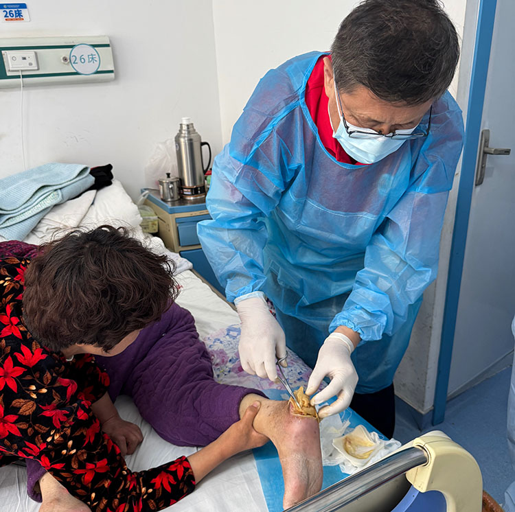 5月16日,中國中西醫(yī)結(jié)合學會燒傷專委會常委、濱州醫(yī)學院名譽教授、北京榮祥再生醫(yī)學研究所副所長王洪生教授,醫(yī)療部宋小紅副主任蒞臨茂名油城醫(yī)院普外科開展慢創(chuàng)??平ㄔO及學術交流,受到鐘煥龍主任團隊的熱烈歡迎及高度評價。王洪生教授深入病房,對燒傷、糖尿病足、慢性潰瘍創(chuàng)面患者進行教學查房,指導及示范再生醫(yī)療技術規(guī)范化應用,并結(jié)合患者病史及創(chuàng)面特點,分別給予治療建議與方案。