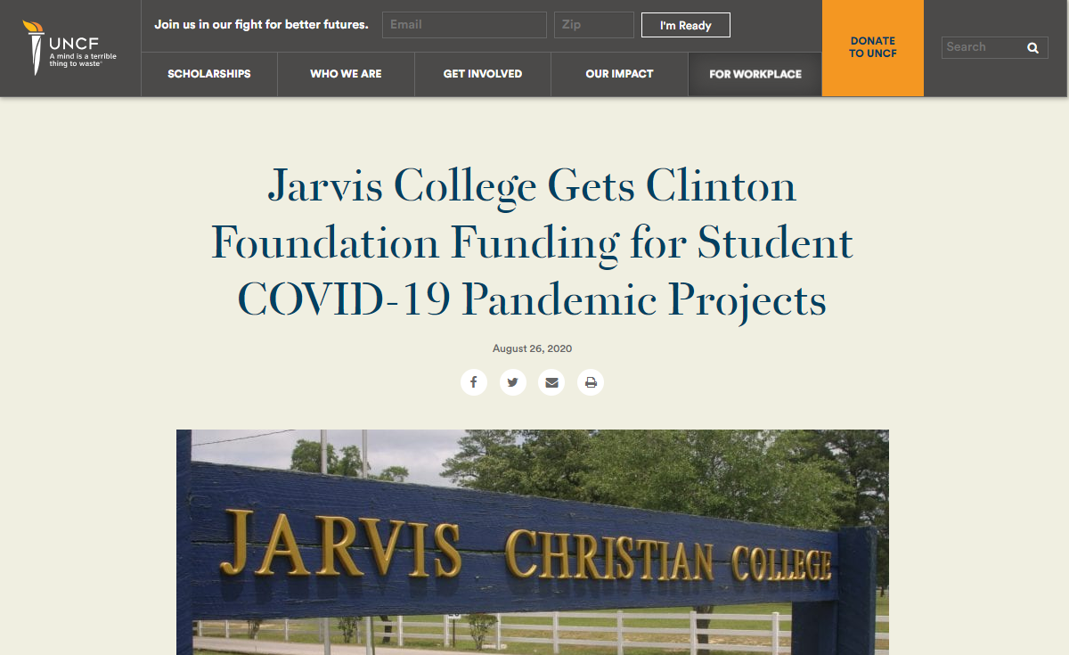 賈維斯基督教學(xué)院,榮獲來自克林頓基金會(huì)的“新冠病毒學(xué)生行動(dòng)基金”