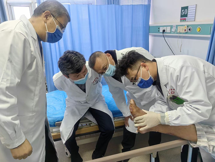 2023年2月18日,再生醫(yī)學(xué)知名專家、《中國燒傷創(chuàng)瘍雜志》常務(wù)編委趙瑞慶主任應(yīng)邀到長治市第二人民醫(yī)院(三甲)規(guī)范運用再生醫(yī)療技術(shù)會診4例創(chuàng)面患者,其中一例糖足,一例潰瘍創(chuàng)面,一例動脈硬化創(chuàng)面,一例骨折創(chuàng)面,并為劉主任解答了這幾類創(chuàng)面的關(guān)鍵處理方法。