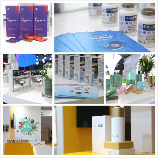年年進(jìn)博會(huì),年年有新品,年年有期待。本屆進(jìn)博會(huì)上,美寶國(guó)際攜含多種再生營(yíng)養(yǎng)物質(zhì)和天然成分的升級(jí)版GI REGENERATE(極愛(ài)膠囊)、血糖平衡膳食補(bǔ)充劑升級(jí)版Glymate(衡糖膠囊)、為皮膚逆齡提供全新支持的美寶俐再度亮相。而擁有美寶專(zhuān)利技術(shù)的全新純植物原汁護(hù)膚系列產(chǎn)品MIAGE也在加州展臺(tái)驚艷亮相。