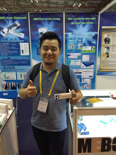 一位來自俄羅斯的帥哥客戶,在聽了美寶工作人員對美寶國際以及徐榮祥教授的介紹之后,表示美寶的燒傷與創(chuàng)傷的科技成果將會幫助很多俄羅斯病人恢復(fù)重生,美寶的產(chǎn)品正是他們苦苦尋找的,流露出一種“眾里尋他千百度”的惆悵與“那人卻在燈火闌珊處”的驚喜。臨走的時候,帥哥不僅送給美寶工作人員一瓶伏特加作為禮物,還特地對著美寶的LOGO豎起一個大拇指,連聲稱“贊”。