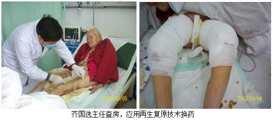 2012年3月2日~5日中國中西醫(yī)結(jié)合學(xué)會(huì)燒傷專業(yè)委員會(huì)常委,北京美寶燒傷創(chuàng)瘍研究所臨床部杜福勤主任受齊國軒主任的邀請?jiān)俅蝸淼酵畋笨傇簽?0歲高齡患者及高位截癱褥瘡患者會(huì)診。