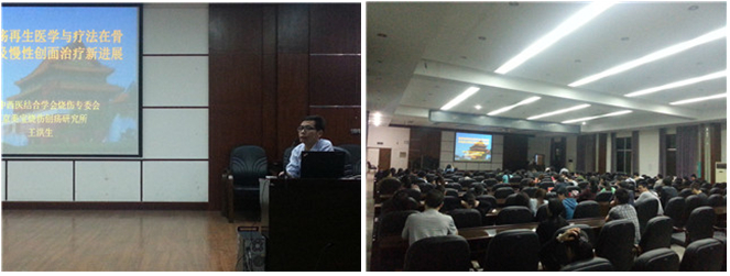 2012年4月22日晚,應(yīng)該院的邀請中國中西醫(yī)結(jié)合學會燒傷專業(yè)委員會常委兼秘書,《中國燒傷創(chuàng)瘍雜志》副總編輯,北京燒傷創(chuàng)瘍研究所副所長、臨床研究部主任王洪生研究員到該醫(yī)院進行“燒傷創(chuàng)瘍再生醫(yī)學與療法在骨科創(chuàng)瘍及慢性創(chuàng)面治療新進展”專題講座。專題學術(shù)講座于當日晚上7點半在該醫(yī)院會議室舉行,該院燒傷科,骨科,普外科,腫瘤科、內(nèi)科,皮膚科和婦產(chǎn)科的相關(guān)專業(yè)160余名專家及醫(yī)護人員參加了學術(shù)會議。在專題學術(shù)講座中,王主任結(jié)合了大量的臨床病例圖片,針對骨外露、鋼板外露、肌腱外露、深達全層皮膚、皮下、肌肉的深度創(chuàng)面及各類慢性難愈性潰瘍創(chuàng)面如糖尿病足、動脈閉塞癥、壓瘡等創(chuàng)面的規(guī)范化處理方法與技巧、注意事項等進行了細致地講解。在會的醫(yī)護人員看到大量真實的臨床病例資料圖片后,都被燒傷創(chuàng)瘍再生醫(yī)學與療法良好的治療效果所震撼與折服。此次講座深受會者的歡迎,燒傷創(chuàng)瘍再生醫(yī)學與療法為醫(yī)護人員在臨床上提供了一條新的治療思路,開闊了醫(yī)護工作者的視野,增長了新的知識。