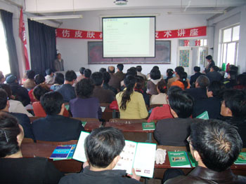 經(jīng)過近幾年來的推廣普及維護(hù),張家口市區(qū)縣內(nèi)各級(jí)醫(yī)療單位,不同程度的應(yīng)用著燒傷皮膚原位再生醫(yī)療技術(shù),從而滿足了部分燒傷患者的就醫(yī)需求,解決了醫(yī)生在治療患者中遇到的難題。張家口是一個(gè)地域遼闊、人群居住分散、交通欠發(fā)達(dá)的地區(qū),燒傷皮膚原位再生醫(yī)療技術(shù)推廣起來有一定的難度。今年春季以來 ,張家口市衛(wèi)生局科教科在熟知該項(xiàng)技術(shù)是“國(guó)家十年百項(xiàng)科技成果”且已被國(guó)家列為“星火計(jì)劃”推廣項(xiàng)目之后,為了更大范圍、更加深入的向基層推廣,更好的讓醫(yī)務(wù)人員解決基層燒傷創(chuàng)瘍患者的痛苦,對(duì)燒傷皮膚原位再生醫(yī)療技術(shù)的推廣給予了高度重視,并以書面文件要求各縣級(jí)衛(wèi)生局給予支持。中國(guó)中西醫(yī)結(jié)合學(xué)會(huì)燒傷專業(yè)委員會(huì)于四月二十三和二十五日,分別在涿鹿縣和陽原縣,舉辦了由縣內(nèi)各級(jí)醫(yī)療單位相關(guān)科室醫(yī)務(wù)人員參加的培訓(xùn)班,兩個(gè)班的聽課人數(shù)分別為135人和105人。在培訓(xùn)班上,由醫(yī)療部樊兆宗主任,重點(diǎn)講解了燒傷皮膚原位再生醫(yī)療技術(shù)的規(guī)范應(yīng)用,以及再生療法在多學(xué)科的應(yīng)用和進(jìn)展。大家對(duì)講座非常感興趣,學(xué)習(xí)熱情很高,會(huì)后又進(jìn)行了互動(dòng)和交流,加強(qiáng)了縣級(jí)醫(yī)院和鄉(xiāng)村醫(yī)生的合作,起到很好的技術(shù)開發(fā)推廣和鞏固的作用。與會(huì)人員對(duì)“中國(guó)中西醫(yī)結(jié)合學(xué)會(huì)燒傷專業(yè)委員會(huì)”給基層醫(yī)院、衛(wèi)生院以及診所送來這樣好的技術(shù),協(xié)助他們解決臨床上的難題,一再表示感謝。通過這兩次辦班我們也深深體會(huì)到:“燒傷皮膚再生醫(yī)療技術(shù)”是深受基層醫(yī)療單位和廣大患者歡迎的好技術(shù),我們一定要再接再厲。與此同時(shí)把“人體再生養(yǎng)生保健”和“速愈貼”介紹給大家。把燒傷皮膚再生醫(yī)療技術(shù)推廣工作,做的更好!