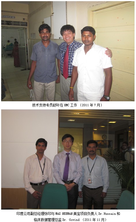 2010年6月9日美寶燒傷膏印度三期臨床試驗正式啟動。在時任印度燒傷學會主席Jayaraman的帶領下,和Madurai醫(yī)科大學附屬醫(yī)院院長Balasubramanian教授、B.G醫(yī)院Kannan醫(yī)生、Omshakthi醫(yī)院Poongodi醫(yī)生的共同努力下,在美寶國際市場集團總裁孫霞女士、總裁班子委員兼市場總部總經(jīng)理、印度美寶分公司董事總經(jīng)理劉鋼先生、中國燒傷創(chuàng)瘍科技中心臨床部主任、北京榮祥再生醫(yī)學研究所副所長、中國燒傷創(chuàng)瘍雜志社副社長陳永翀教授(以及參與臨床方案的其他專家)、時任技術支持專員張印(現(xiàn)任印度分公司副總經(jīng)理)、技術支持專員舒葉(現(xiàn)任國際市場技術總部產(chǎn)品主管)以及印度 CRO的MEBO團隊的大力支持與協(xié)作下;整個團隊克服重重困難,美寶燒傷膏印度三期臨床試驗于2011年10月28日正式完成臨床病例的采集工作(201例),這標志著首例中國的成品藥在印度的正式藥品注冊工作取得重大階段性成果,結束了藥品注冊最為關鍵的一個環(huán)節(jié),全面進入藥品注冊的后續(xù)攻堅階段。隨后,美寶國際市場集團總裁孫霞女士、總裁班子委員兼市場總部總經(jīng)理、印度美寶分公司董事總經(jīng)理劉鋼先生以及印度分公司副總經(jīng)理張印進行了全面考察與工作部署,并與印度知名上市醫(yī)療機構MAX NEEMAN建立了臨床試驗后期、后期燒傷膏注冊的合作伙伴關系,打好燒傷膏注冊的攻堅戰(zhàn)。