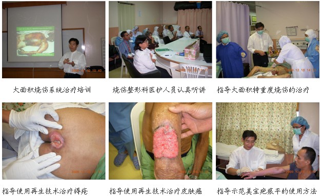 上午,陳教授以“大面積燒傷的系統(tǒng)治療”為題,對(duì)該院燒傷整形科的全體醫(yī)護(hù)人員進(jìn)行了燒傷再生醫(yī)學(xué)療法治療大面積燒傷的抗休克、預(yù)防控制感染、多器官功能的保護(hù)、營(yíng)養(yǎng)支持治療等系統(tǒng)的培訓(xùn),陳教授結(jié)合了自己20年的臨床經(jīng)驗(yàn)毫不保留地給在場(chǎng)的醫(yī)護(hù)人員進(jìn)行了傳授,同時(shí)舉出了各種典型病例及治療意見(jiàn),大家都表示受益匪淺。接著,陳教授又對(duì)目前該院使用再生醫(yī)學(xué)技術(shù)治療的9位燒傷、創(chuàng)瘍患者進(jìn)行會(huì)診,現(xiàn)場(chǎng)示范和指導(dǎo)醫(yī)生和護(hù)士換藥,強(qiáng)調(diào)了注意的事項(xiàng),要求大家要做到理論和實(shí)際相結(jié)合。    下午,陳教授向燒傷整形科的主任和醫(yī)護(hù)人員示范和傳授了“自體微粒皮種植原位培養(yǎng)再生技術(shù)”,使該院燒傷科的燒傷再生技術(shù)的水平得到了進(jìn)一步提高。
