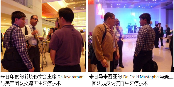 晚宴期間,美寶團(tuán)隊(duì)領(lǐng)隊(duì)孫霞女士與多國(guó)專家和美寶的老朋友們進(jìn)行了深入的溝通。前印度燒傷協(xié)會(huì)主席,印度南部最大燒傷中心主任Dr. Jayaraman說(shuō)起正在印度進(jìn)行的美寶燒傷膏在燒傷創(chuàng)面上的III期臨床試驗(yàn),美寶組病人傷口恢復(fù)非常好,愈合后沒(méi)有瘢痕;對(duì)于大面積燒傷患者,美寶燒傷膏還能夠起到很好的保護(hù)創(chuàng)面的作用,極大地降低死亡率。孫霞女士回應(yīng)說(shuō),燒傷膏中獨(dú)特的再生營(yíng)養(yǎng)成份和營(yíng)養(yǎng)物質(zhì)有效地保護(hù)和提供創(chuàng)面細(xì)胞再生條件,從而能夠達(dá)到我們?cè)谂R床中所看到的神奇的效果。在接下來(lái)的主席演講中將有更詳細(xì)的介紹。如果將來(lái)有機(jī)會(huì),我們希望您能來(lái)中國(guó)的基地醫(yī)院參觀,在那里您將看到的不僅僅是燒傷創(chuàng)面神奇的治療效果,更有多達(dá)數(shù)十種不同創(chuàng)面均可以用燒傷膏治愈。Dr. Jayaraman表示隨著美寶再生醫(yī)療技術(shù)如此快速的發(fā)展,更深層次的掌握再生技術(shù)是歷史的必然,他渴望能夠有這樣的交流機(jī)會(huì)。